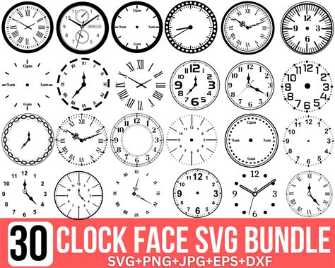 Clock Face Svg Bundle,Clock Face Template Vector Clipart Svg Png Dxf Eps Stencil Cut File For Cameo Silhouette Cricut Vinyl File