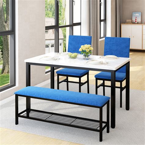 HUGROVE 4-Piece Dining Table Set For 4, 47.24-Inch Kitchen Table With Upholstered Velvet Bench & Chairs, Space-Saving Modern Faux Marble Dining Room